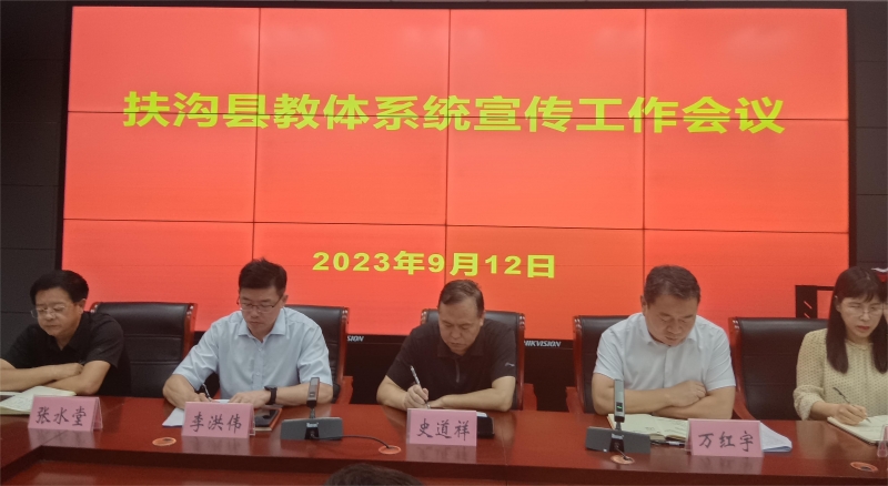9月12 日下午,扶溝縣教體(ti) 係統宣傳(chuan) 工作會(hui) 議在該縣教體(ti) 局召開。kaiyun体育全站网页版入口副總編輯史道祥出席會(hui) 議並做指導講話,扶溝縣教體(ti) 局黨(dang) 組書(shu) 記、局長萬(wan) 紅宇出席會(hui) 議並做總結講話。會(hui) 議就全縣下一階段教育宣傳(chuan) 工作進行安排部署,要求選好人、謀好事、發好聲,樹立教育良好形象,以宣傳(chuan) 工作高質量推動扶溝教育體(ti) 育事業(ye) 高質量發展。