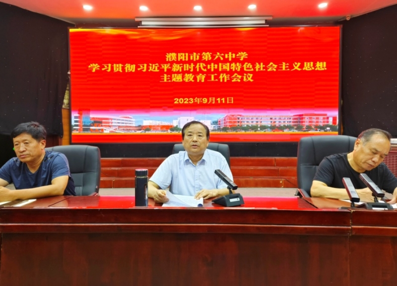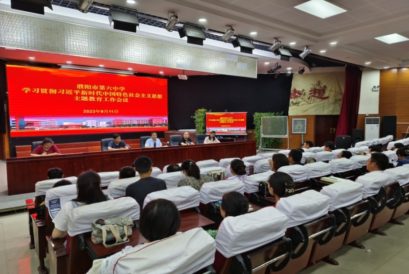 2023年9月11日,市六中召開學習(xi) 貫徹習(xi) 近平新時代中國特色社會(hui) 主義(yi) 思想主題教育工作會(hui) 議,中層以上領導幹部、全體(ti) 黨(dang) 員參加會(hui) 議,副校長丁士軍(jun) 主持會(hui) 議。