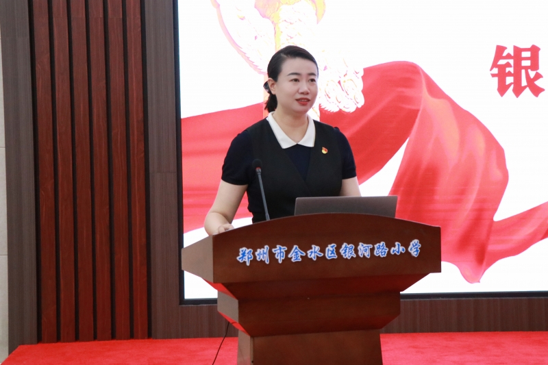 兒(er) 童是祖國的花朵,國家的未來和民族的希望。共青團員代表呂夢瑩向孩子們(men) 展示了國旗和國徽的意義(yi) ,還分享了新中國的建國曆程,讓愛國情懷滲透到每一位學生,把愛國的種子埋進每個(ge) 銀河學子的心靈深處。