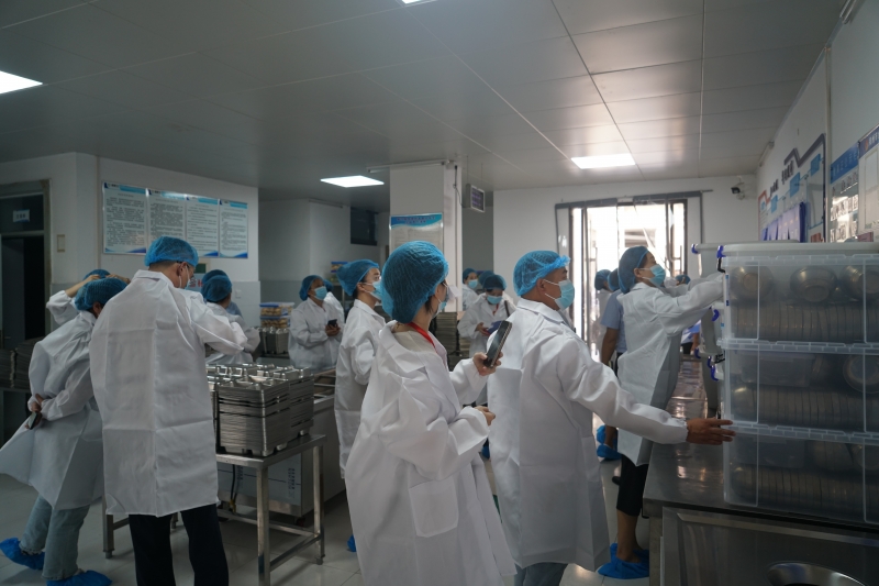 首先,在學校食堂管理人員的帶領下,家委會(hui) 成員走進學校食堂,零距離參觀了學校食堂的操作間、儲(chu) 藏間、洗菜區、分餐間等區域,詳細了解食堂操作的各個(ge) 環節。完善的設備、幹淨整潔的操作台、新鮮的食材讓家長們(men) 對學校食堂有了更為(wei) 直觀的了解。
