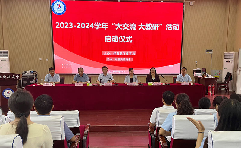 9月19日上午,2023—2024學年“大交流 大教研”活動啟動儀(yi) 式暨初中語文學科教研活動在郟縣實驗高中舉(ju) 行。郟縣教體(ti) 局黨(dang) 組書(shu) 記、局長李剛,局領導郭延輝出席儀(yi) 式。郟縣教育教學研究中心全體(ti) 人員,實驗高中相關(guan) 負責人、初中部全體(ti) 語文教師以及全縣各初中選派語文教師等100餘(yu) 人參加儀(yi) 式。儀(yi) 式由郭延輝主持。