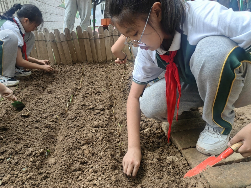 這次勞動種植實踐活動以“‘勤’耕農(nong) 文化,‘勞’作顯田間”為(wei) 主題,通過班級策劃、年級融合的方式進行。學校勞動教師和校外勞動指導老師深入勞動基地,為(wei) 學生講解耕種方法和步驟,使其了解各類蔬菜的生長特點和種植技巧。
