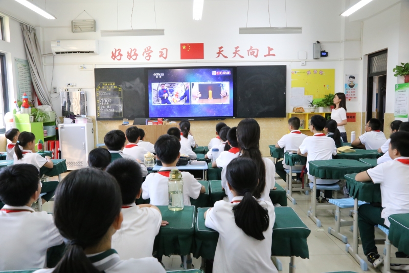2023年9月21日15時45分,中國空間站“天宮課堂”第四課正式拉開序幕。神舟十六號航天員景海鵬、朱楊柱、桂海潮三位航天員相互配合進行授課,為(wei) 孩子們(men) 帶來精彩的空中課程。為(wei) 激發孩子們(men) 學習(xi) 科學的興(xing) 趣,豐(feng) 富科學知識,提升科學素養(yang) ,金水區文源小學組織學生觀看“天宮課堂”,感受宇宙和科技的魅力。