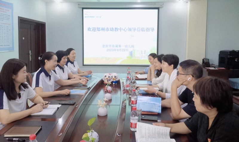 中午1:50鄭州市幼教發展中心黨(dang) 支部書(shu) 記、主任郝江玉等一行到市直一幼進行調研指導。