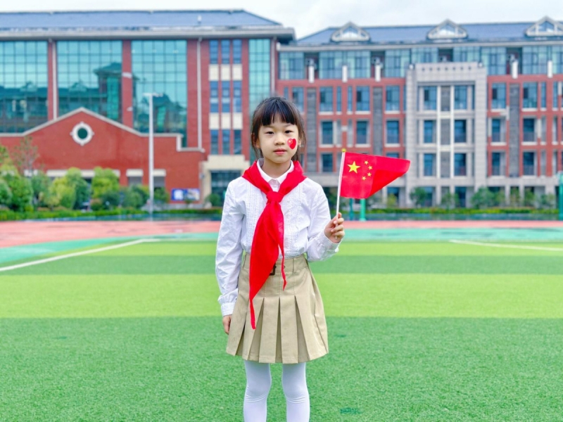 一二年級的孩子們(men) 衣著整潔,懷著滿心的熱愛與(yu) 喜悅,與(yu) 國旗合影,祝福偉(wei) 大的祖國母親(qin) 生日快樂(le) !一張張富有創意的照片,自豪的笑臉與(yu) 鮮豔的國旗一起定格,構成了一幅幅少年與(yu) 希望的美麗(li) 畫卷。