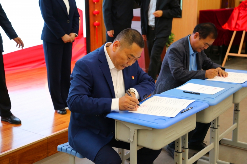 在大家的共同見證下,金水區豐(feng) 產(chan) 路小學黨(dang) 支部書(shu) 記、校長陳鵬與(yu) 鄭州師範學院初等教育學院院長侯宏業(ye) 進行簽約。鄭州市政協常委、河南省心理學科技創新平台聯合體(ti) 主任晉爭(zheng) 與(yu) 豐(feng) 產(chan) 路小學黨(dang) 支部書(shu) 記校長陳鵬為(wei) “鄭州市小學生心理危機監測預警技術創新聯盟”揭牌。鄭州師院初等教育學院黨(dang) 總支書(shu) 記劉世戰與(yu) 金水區教育局高招辦主任曹鵬舉(ju) 為(wei) “鄭州師院小學教育專(zhuan) 業(ye) 實踐教學基地”揭牌。