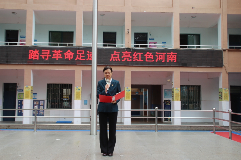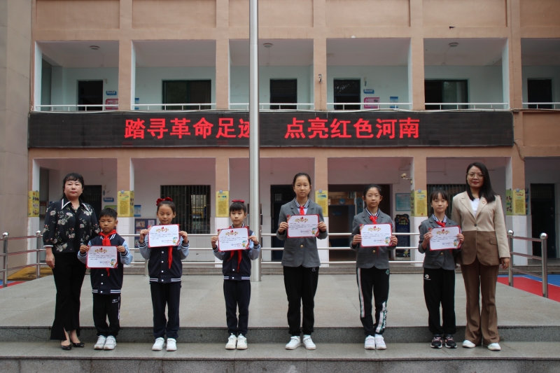 為(wei) 積極響應習(xi) 近平總書(shu) 記“把紅色資源利用好、把紅色傳(chuan) 統發揮好、把紅色基因傳(chuan) 承好”的重要講話精神,深入推進少先隊員學黨(dang) 史教育活動,9月26日上午,金水區南陽路第三小學舉(ju) 行了“踏尋革命足跡,點亮紅色河南”國慶假期尋訪之旅啟動儀(yi) 式。在啟動儀(yi) 式上,學校黨(dang) 支部副書(shu) 記王強首先宣讀了在暑期尋訪實踐活動中湧現出的“尋訪小明星”獲獎名單。副校長楊曉寧、副校長荊文靜共同為(wei) 獲獎小明星頒發榮譽證書(shu) 。