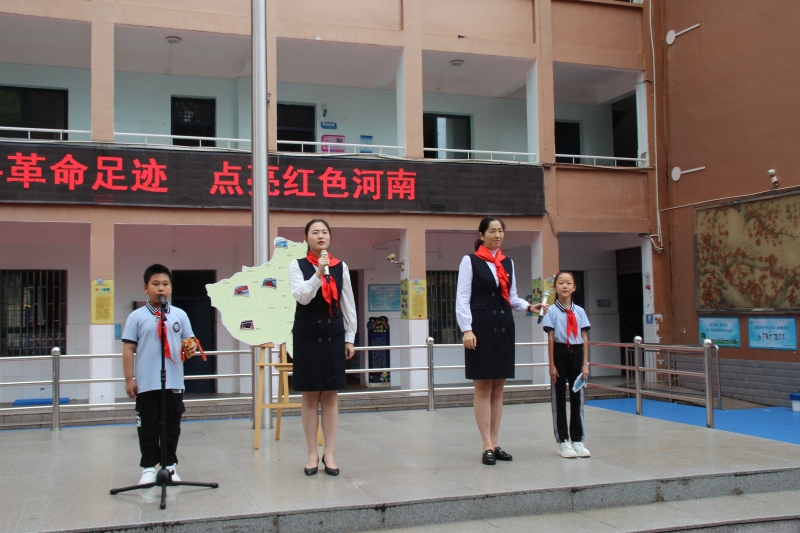 優(you) 秀“尋訪小明星”代表郎思浩、李沁媛以小品的形式生動地講述了自己的尋訪經曆及收獲;團員教師閆深通過生動的講解與(yu) 少先隊員代表一起點亮了“紅色河南”尋遊版圖;黨(dang) 員教師張婷肯定了團員、少先隊員的尋訪成果,號召更多少先隊員用行動歌頌和讚美河南深厚的紅色曆史文化,以及近年來取得的豐(feng) 功偉(wei) 績。