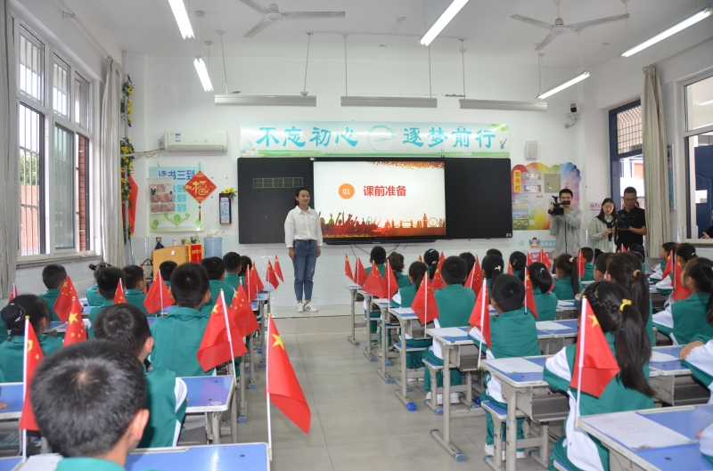 此次展示活動又適逢建國74周年,為(wei) 了表達對祖國的熱愛之情,許多師生的臉上貼上了國旗貼畫,不少學生的課桌上插了國旗,每個(ge) 班級的學生都用合唱《我和我的祖國》、朗誦《少年中國說》等多種形式,表達了同學們(men) 對偉(wei) 大祖國的拳拳愛國之心和深深的報國之情。