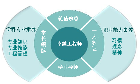 基於(yu) 職業(ye) 能力模型,建立了以卓越工程師培養(yang) 為(wei) 主體(ti) ,以學科專(zhuan) 業(ye) 素養(yang) 、職業(ye) 能力素養(yang) 為(wei) 兩(liang) 翼,以輪值班委、一人多證、學業(ye) 導師和學長領航計劃為(wei) 驅動的“一體(ti) 兩(liang) 翼,四維驅動”就業(ye) 能力提升體(ti) 係,不斷提升學生的就業(ye) 競爭(zheng) 力。
