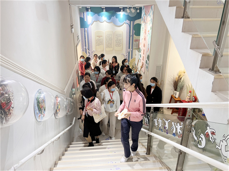在講解員老師的帶領下,學員們(men) 參觀園所環境,對樓道環境、戶外活動場地等進行參觀,重點參觀“移動的美術館”,發現樓道每個(ge) 角落都被孩子與(yu) 老師賦予了“生命力",大家對幼兒(er) 園為(wei) 孩子們(men) 創設的溫馨且豐(feng) 富的環境給予高度評價(jia) 。