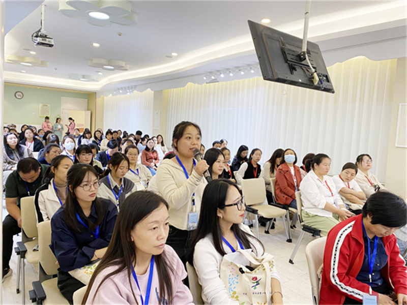 在音體(ti) 室,現場觀摩寇婭婷老師執教的小班滴流畫《七彩下雨天》和熊仙景老師執教的小班數學活動《小熊旅行記》,兩(liang) 位教師的教學形式靈活多樣,操作材料豐(feng) 富多彩,教學語言充滿童趣,充分調動了幼兒(er) 的積極性。教研環節,學員們(men) 紛紛表示幼兒(er) 在活動中表現出濃厚的興(xing) 趣,真正做到了師幼互動、幼幼互動,讓孩子能夠在輕鬆愉悅的氛圍中獲取知識體(ti) 驗和審美提升。