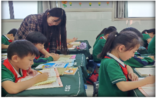 每天下午的“學習(xi) 時刻”各學科教師實施分層作業(ye) 、彈性作業(ye) 和個(ge) 性化作業(ye) ,並輪流在教室手把手教,一對一改,指導學生完成當天作業(ye) ,提升學習(xi) 效率,培養(yang) 學生良好的作業(ye) 習(xi) 慣,保證作業(ye) 質量,做到“書(shu) 麵作業(ye) 不出校門”,全麵減輕家長負擔。