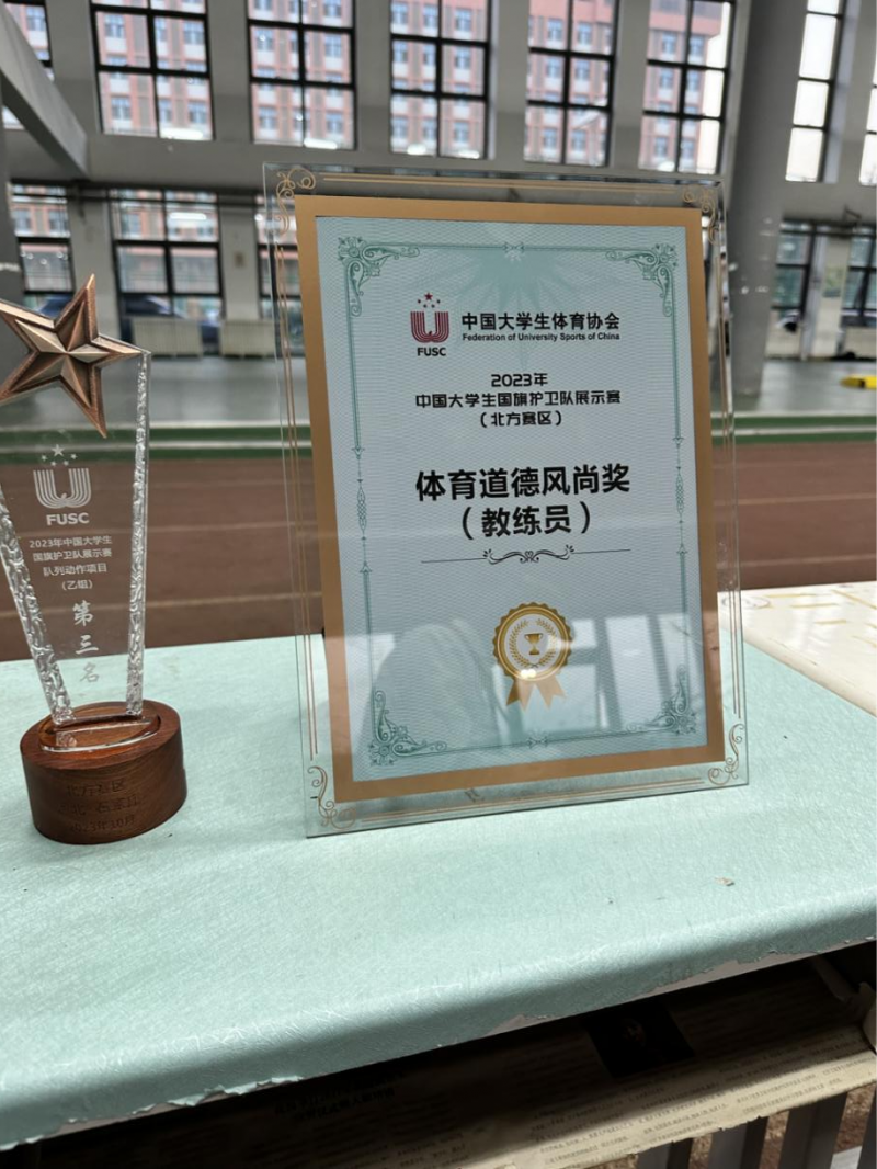 此次展示賽匯集了清華大學、北京航空航天大學、中央財經大學、南京師範大學等21所本專(zhuan) 科院校國旗護衛隊,400餘(yu) 名學生參賽。在領隊楊修廠、教練員李明陽、畢誌成、潘超的帶領下,平頂山職業(ye) 技術學院18名隊員(7名女生)刻苦訓練、精心備賽、積極拚搏,發揮出應有的技術水平。教練員李明陽,隊員劉浩田、張鬆強、張世華獲得體(ti) 育道德風尚獎,團隊榮獲集體(ti) 獎。