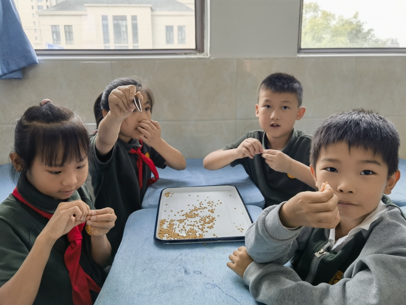 隨後,誌願服務隊來到二三中隊,為(wei) 隊員們(men) 科普各類糧食作物的栽培曆史和形態特點,感受農(nong) 民耕種的不易。在動手實踐環節,隊員們(men) 化身小小糧食質量檢驗員,拿起鑷子認真挑揀小麥的不完善粒,通過親(qin) 身體(ti) 驗感知“粒粒皆辛苦”的真正含義(yi) ,學校發起“光盤行動”倡議,全校隊員都積極地參與(yu) 其中,從(cong) 點滴做起,從(cong) 現在做起,從(cong) 自身做起,向舌尖上的浪費說“不”,讓“光盤”成為(wei) 一種習(xi) 慣,爭(zheng) 做“節糧小明星”。