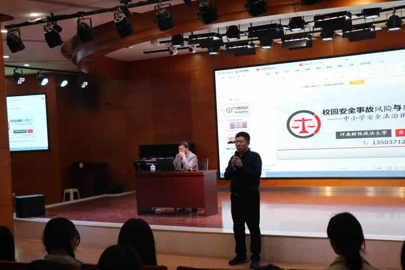 為(wei) 進一步加強平安校園建設,增強全體(ti) 教師校園安全意識,提高校園安全事故預防和處置能力,保障學生身心健康發展,2023年10月16日下午,鄭州市金水區文化路第二小學邀請河南財經政法大學蘇萬(wan) 壽教授進行《校園安全事故預防與(yu) 處置》安全法治講座。