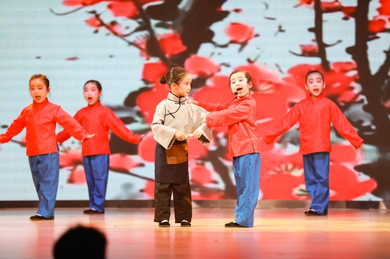由教師和家長帶來的樂(le) 器聯奏《中國紅》塑造了大無畏的精神和戰勝一切困難的英雄氣概,表達了中國人民拚搏堅韌、勇往直前、精忠報國的精神。情景表演《品味中華 古風國韻》一幕幕情景講述中醫藥故事,感受中華傳(chuan) 統非遺文化絨花的魅力,每一個(ge) 孩子都能找到自己的閃光點。幼兒(er) 戲曲《鍘刀下的紅梅》小演員們(men) 自信滿滿地走上舞台中央,個(ge) 個(ge) 姿態怡然,在節目中演繹劉胡蘭(lan) 的剛柔並濟和責任擔當,她用行動踐行著入黨(dang) 時的初心和誓言,用勇氣和智慧作出榜樣和表率。自信的笑容、誇張的表情、神氣的動作不僅(jin) 吸引了在場所有的小朋友,更讓台下的觀眾(zhong) 們(men) 讚歎不已。