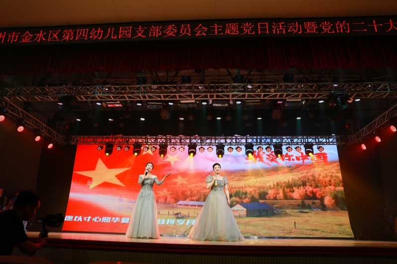 豐(feng) 富多彩的形式、主題鮮明的內(nei) 容、熱情洋溢的表演,贏得了觀眾(zhong) 的陣陣掌聲。活動最後,歌曲《我和我的祖國》唱響主旋律,弘揚正能量,表達了金水區第四幼兒(er) 園師生對祖國山河的深情和熱愛。