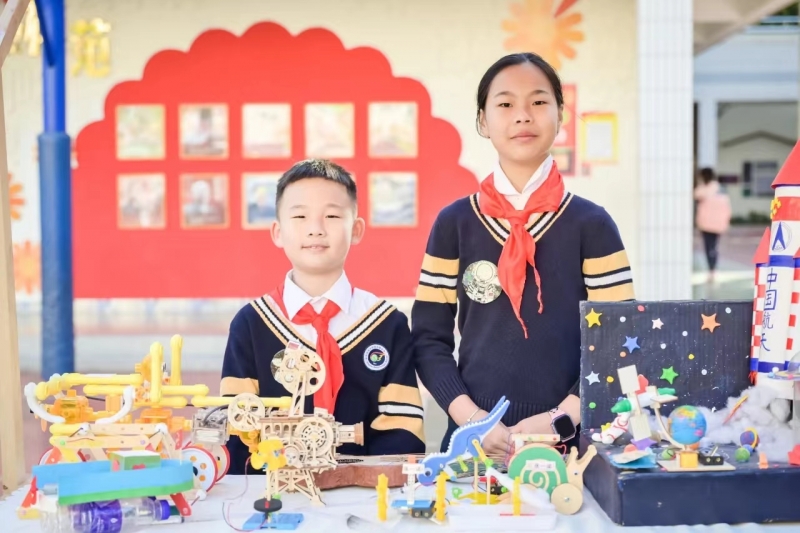 本次慶典分兩(liang) 個(ge) 時段。第一時段在室外進行靜態展示的是科技創新類、文化藝術類、中醫體(ti) 驗類等22個(ge) 社團,孩子們(men) 的作品及解說吸引來賓駐足觀看,嘖嘖稱讚。動態展示的有棒球、形體(ti) 、古箏、葫蘆絲(si) 等四個(ge) 社團,優(you) 美動人的樂(le) 曲與(yu) 動靜結合的運動融為(wei) 一體(ti) ,充分展示了體(ti) 育與(yu) 美育的完美統一。