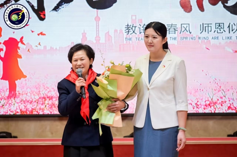 少先隊員為(wei) 退休教師代表敬獻鮮花,老校長程俊梅帶領退休教師為(wei) 學校60華誕送上祝福!讓在場觀眾(zhong) 數次動容!