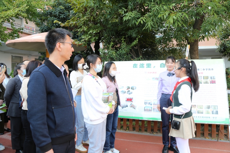 2023年10月20日下午,金水區黃河路第二小學組織了課後服務開放日活動。金水區教育局教育科科長杜菁、金西南學區各校相關(guan) 負責人和學校94名家長走進校園,參觀學校課後服務開展情況。
