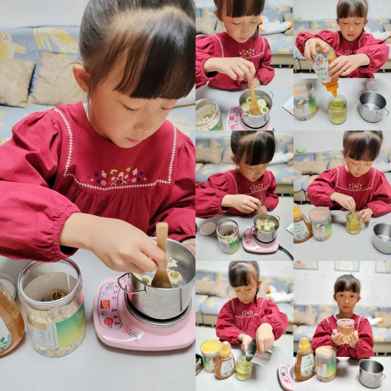 二年級的孩子們(men) 親(qin) 手製作香甜的菊花蜜送給自己的爸爸媽媽,與(yu) 父母一起共品秋菊之香,將菊花那種廉潔自守的品格久久地在家風中傳(chuan) 承。