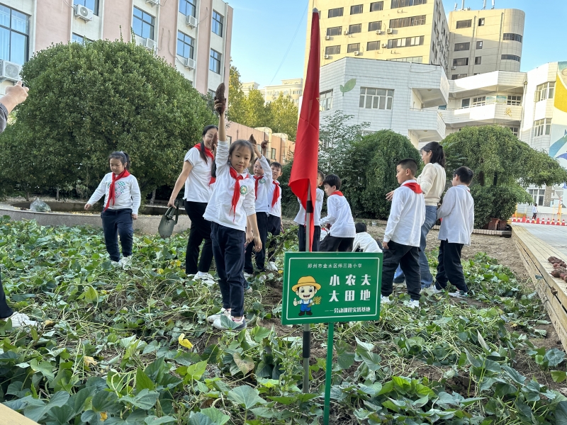 為(wei) 了豐(feng) 富課後延時服務內(nei) 容,讓孩子們(men) 體(ti) 驗糧食的來之不易,感受豐(feng) 收的喜悅,10月24日下午,利用課後服務時間,金水區緯三路小學的師生及家長誌願者齊聚學校小農(nong) 場實踐基地,體(ti) 驗挖紅薯的快樂(le) ,享受豐(feng) 收的喜悅。