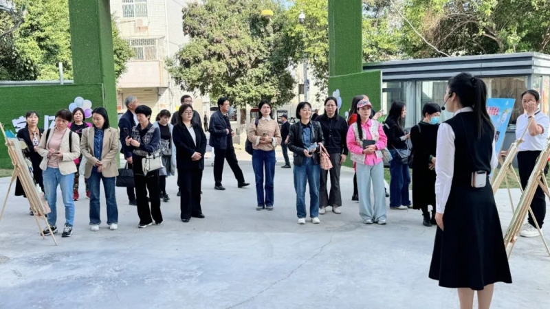第一幼兒(er) 園關(guan) 工委秘書(shu) 長李琳帶領大家參觀新園所,詳細介紹幼兒(er) 園的園所文化、辦園理念及課程體(ti) 係等。觀摩團成員駐足各大展板,耐心聆聽講解,近距離感悟幼兒(er) 園家庭教育工作之美,深切感受全園豐(feng) 富的文化底蘊和專(zhuan) 業(ye) 的教育理念。