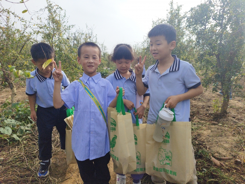 秋天是收獲的季節,活動基地的紅薯已經成熟。各班學生躍躍欲試,紛紛投入到熱火朝天的挖紅薯中去。大家齊心協力,相互配合,互相幫助,你來挖土,我來拔紅薯,各顯其能。孩子們(men) 一個(ge) 個(ge) 化身“小農(nong) 夫”,忙得不亦樂(le) 乎,每個(ge) 人的臉上都是收獲的喜悅。在農(nong) 耕實踐中,孩子們(men) 完善了內(nei) 心的成長,品味了收獲的樂(le) 趣,達成了與(yu) 自然的鏈接。