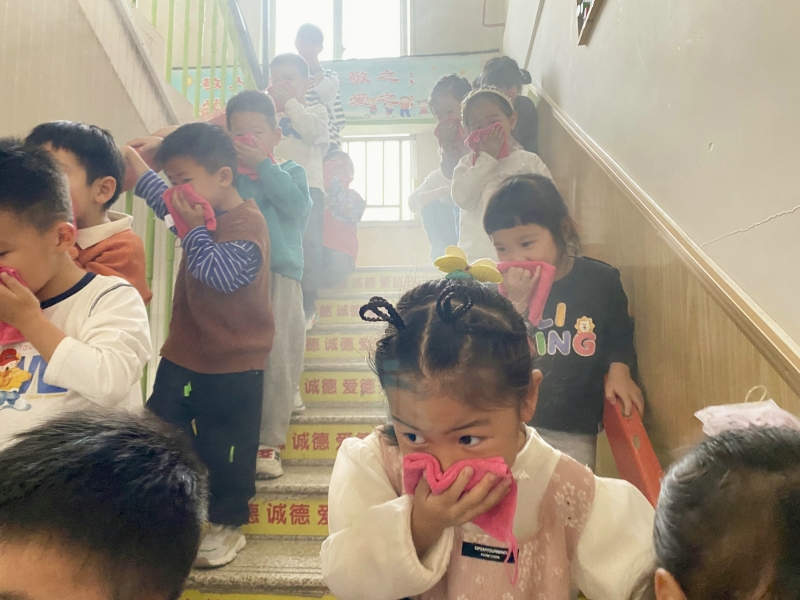 培訓結束後,在園區內(nei) 開展了消防安全演練。隨著急促的警報聲響起,各班教師引導幼兒(er) 用濕毛巾捂住口鼻,彎腰俯身,快速有序地按規定的路線撤離。疏散中,幼兒(er) 們(men) 行動迅速、安全有序,最終在老師的帶領下於(yu) 規定時間內(nei) 撤離到安全地帶。活動現場,受邀家長全程觀摩了疏散演練。