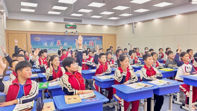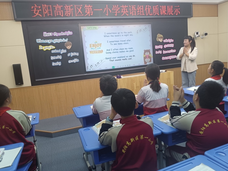 路燕民老師執教《My friends. A . Let's learn& Let's talk》一課。她采用互動遊戲的方式,為(wei) 學生創設真實的語言環境,引導學生在活動中敢說、敢玩、敢創新,同學們(men) 參與(yu) 其中,樂(le) 在其中。戚丹丹老師授課《What would you like? A .Let's learn& Let's talk 》。她的課堂大氣,自然,授課過程層層深入,循循善誘,不斷啟發學生思考,使其舉(ju) 一反三。雖是五年級的課程,知識點較多且複雜,但是戚老師的課堂依然趣味十足。墮曉振老師執教《My weekend plan. A .Let's talk》一課。她的課堂穩紮穩打,務實高效,教學由簡入難,彰顯了教師多年教學經驗的沉澱。尤其是墮老師流利順暢的口語,展現了英語教師的風采。