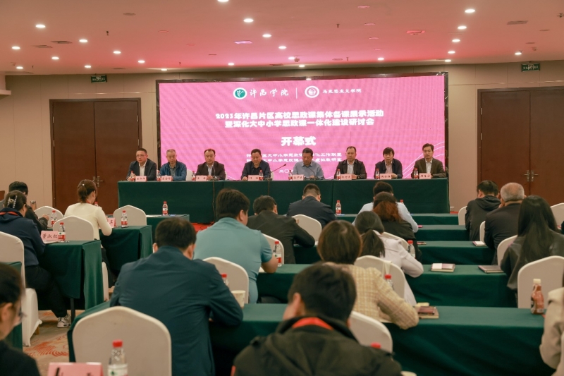 本次會(hui) 議由許昌市教育局、許昌學院主辦,許昌學院馬克思主義(yi) 學院承辦。許昌學院、中原科技學院、許昌職業(ye) 技術學院、許昌電氣職業(ye) 學院、許昌陶瓷職業(ye) 學院五所高校黨(dang) 委宣傳(chuan) 部負責人,許昌市教育局相關(guan) 科室負責人,許昌片區大中小學思政課一體(ti) 化建設專(zhuan) 家指導委員會(hui) 成員和高校思政課教師代表等70餘(yu) 人參加會(hui) 議。