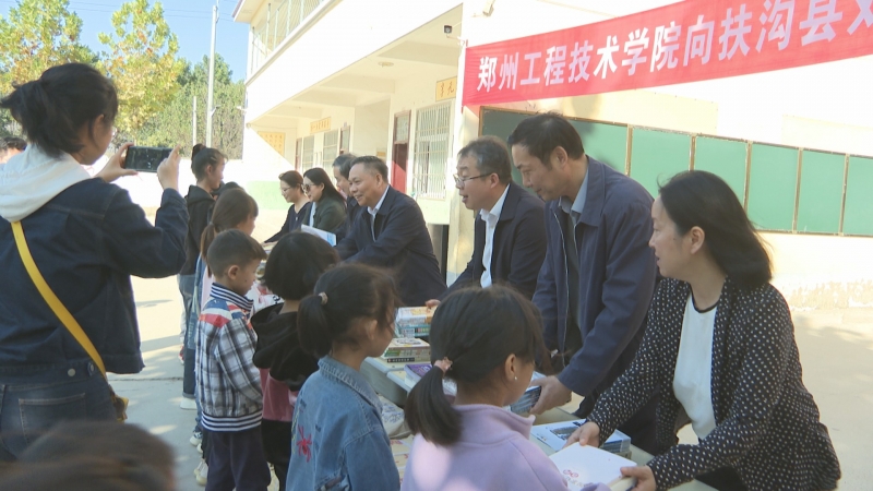 11月1日,鄭州工程技術學院向扶溝縣練寺鎮劉榆小學捐贈圖書(shu) ,捐贈儀(yi) 式在劉榆小學舉(ju) 行。鄭州工程技術學院黨(dang) 委書(shu) 記甘勇,鄭州工程技術學院黨(dang) 委副書(shu) 記、工會(hui) 主席焦紅波,扶溝縣委常委、宣傳(chuan) 部長、副縣長周德誌,縣先進製造業(ye) 開發區管委會(hui) 主任宋曉霞,縣教體(ti) 局局長萬(wan) 紅宇等出席捐贈儀(yi) 式。省直工委駐練寺鎮劉村第一書(shu) 記張永喜主持捐贈儀(yi) 式。
