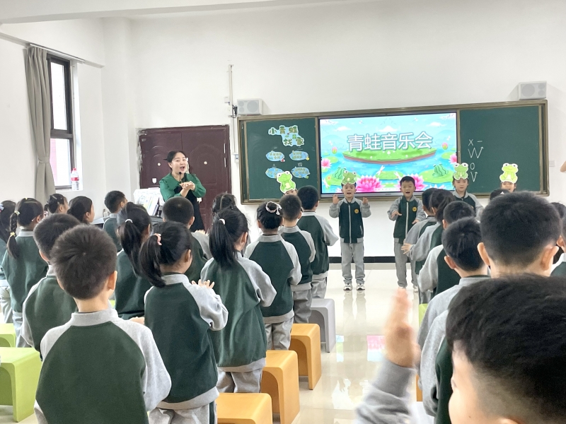 金水區文化路第一小學教育集團金桂校區趙藝琳老師充分滲透了生本教育的教學理念,基於(yu) 新課標,從(cong) 音樂(le) 要素出發,循序漸進地展開學習(xi) 活動,小樂(le) 器的巧妙使用,生動的情景再現,讓孩子們(men) 在充分體(ti) 驗音樂(le) 的同時,享受藝術表現的樂(le) 趣,豐(feng) 富音樂(le) 審美體(ti) 驗。鄂托克旗實驗小學張婧老師導入巧妙,教學方法靈活多變,教學材料運用得當,教態自然,語態親(qin) 切,和學生一起生動活潑演繹了小青蛙找家,取得較好的學習(xi) 效果。