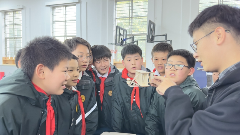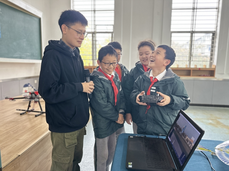 “隊員們(men) ,你們(men) 知道‘隱身’飛機為(wei) 什麽(me) 能隱身嗎?”“你們(men) 知道世界上第一架飛機是誰發明的嗎?”活動現場充滿了一個(ge) 個(ge) 問號。校外輔導員陸一凡老師從(cong) 中國古代有哪些飛行器講起,循序漸進地引入飛機原理,講解了我國近幾年航空航天事業(ye) 的飛躍發展,讓深奧、神秘的科學知識瞬間變得通俗易懂。隨後,一架組裝完成的飛機模型吸引了隊員們(men) 的注意,通過陸老師專(zhuan) 業(ye) 的高難度操作,隊員們(men) 近距離地觀看到了航模飛機是如何起飛、降落的,也觀摩到了真實飛機難以達到的特技動作。隊員們(men) 試飛航模的環節將此次活動推向了高潮,他們(men) 感歎著中國航空航天事業(ye) 發展的來之不易,在欽佩英雄機組的同時也悄悄點亮了自己內(nei) 心的航天夢。