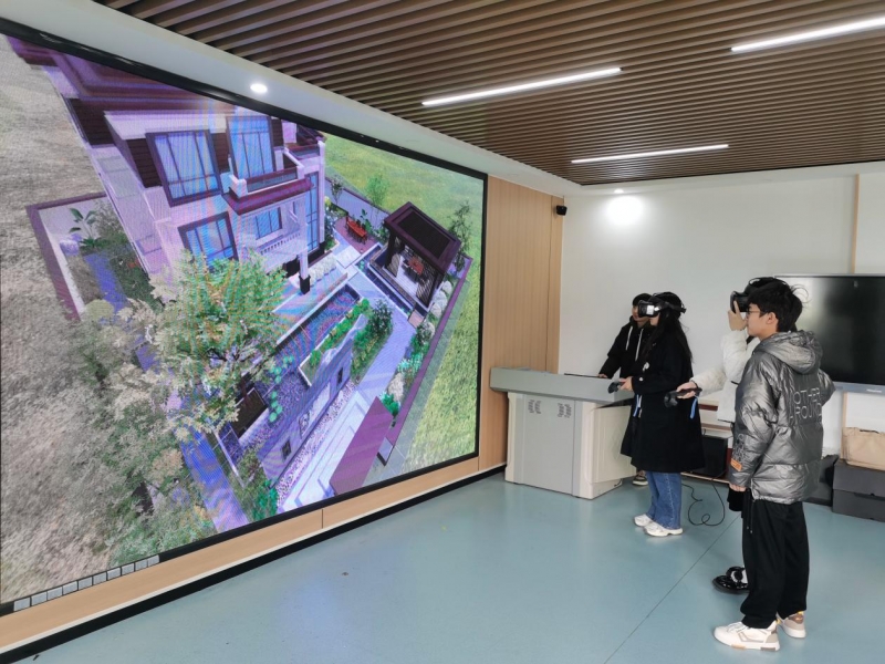 參賽團隊在認真進行園林景觀設計虛擬仿真賽前訓練