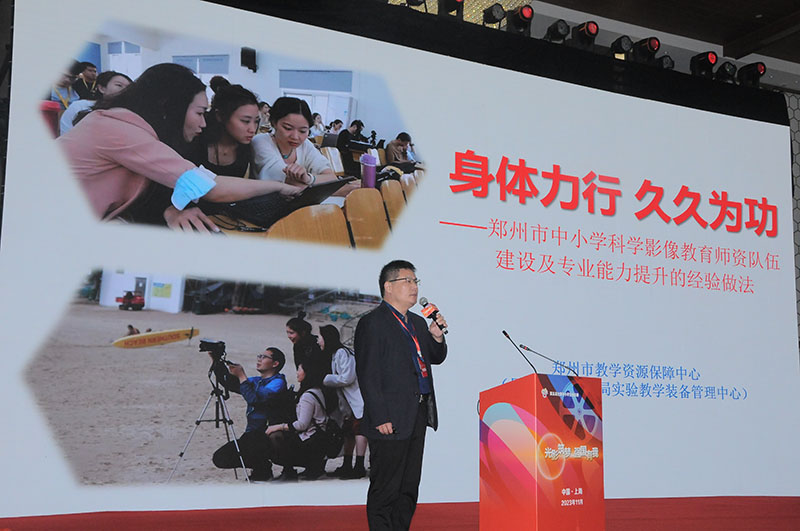 在啟動儀(yi) 式上,鄭州市教學資源保障中心主任張冬磊進行了中小學科學影像教育師資隊伍建設的典型經驗分享。