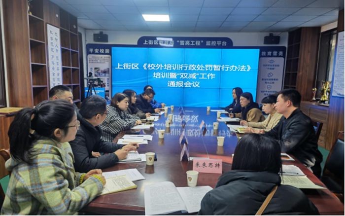 為(wei) 進一步發揮《校外培訓行政處罰暫行辦法》的作用,強化校外培訓機構監管,落實“讓校外培訓機構成為(wei) 學校教育的有益補充”的“雙減”工作要求,11月17日,鄭州市上街區教育局召開了《校外培訓行政處罰暫行辦法》培訓暨“雙減”工作通報會(hui) 議,上街區教育局副局長沙寶琴,教育局、文廣旅體(ti) 局、科工信局相關(guan) 科室負責人及學科類校外培訓機構負責人參加了此次會(hui) 議。