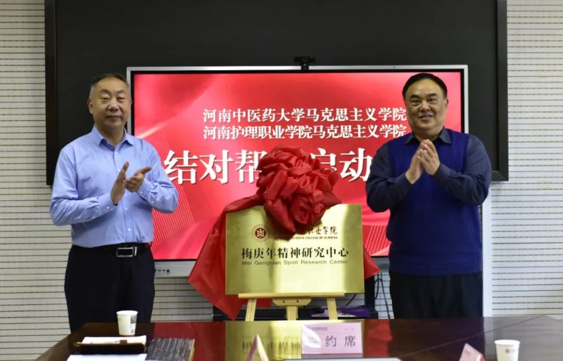 河南中醫藥大學黨(dang) 委副書(shu) 記、工會(hui) 主席張小平,馬克思主義(yi) 學院院長張會(hui) 萍、副院長趙保海,河南護理職業(ye) 學院黨(dang) 委書(shu) 記杜天信、副院長王家橋、紀委書(shu) 記王忠偉(wei) 出席儀(yi) 式。河南護理職業(ye) 學院馬克思主義(yi) 學院院長劉俊德、常務副院長張豔林參加儀(yi) 式。啟動儀(yi) 式由王忠偉(wei) 主持。 杜天信致歡迎辭,簡要介紹學校馬克思主義(yi) 學院的基本情況。他希望河南中醫藥大學馬克思主義(yi) 學院在課程建設、師資建設和教學科研等方麵給予大力幫扶,共同把河南護理職業(ye) 學院馬克思主義(yi) 學院建成馬克思主義(yi) 理論教學、研究和宣傳(chuan) 的堅強陣地。學校黨(dang) 委將繼續大力支持馬克思主義(yi) 學院建設,為(wei) 雙方順利合作提供必要條件和堅實保障。 張小平指出,兩(liang) 所學校同屬醫藥衛生類行業(ye) 特色院校,在專(zhuan) 業(ye) 設置、學科建設、校園文化、人才培養(yang) 等方麵有許多契合點,為(wei) 兩(liang) 校交流合作奠定了良好基礎。兩(liang) 所學校要以馬院結對共建為(wei) 契機,充分結合各自辦學特色和優(you) 勢資源,廣泛開展合作,持續增進交流,攜手構建“資源共享、優(you) 勢互補、協同配合、共同提高”的馬院結對共建新格局。 啟動儀(yi) 式上,雙方馬克思主義(yi) 學院簽訂了結對幫扶意向書(shu) ,並舉(ju) 行了河南中醫藥大學向河南護理職業(ye) 學院馬克思主義(yi) 學院捐書(shu) 儀(yi) 式。 兩(liang) 校領導為(wei) “馬克思主義(yi) 學院結對幫扶”揭牌 兩(liang) 校領導為(wei) “梅庚年精神研究中心”揭牌 張小平、杜天信共同為(wei) “馬克思主義(yi) 學院結對幫扶”和“梅庚年精神研究中心”揭牌。 儀(yi) 式結束後,教育部長江學者特聘教授、國家級教學名師王岩應邀作題為(wei) “新時代思政課青年教師發展的應然之境”線上講座。王岩結合自身教學經驗和相關(guan) 案例,從(cong) “確立一個(ge) 個(ge) 人發展的準確定位”“弘揚兩(liang) 種風氣”“樹立三種意識”“提倡四種資源”“養(yang) 成五種科研品性”“處理好六種教學關(guan) 係”等六個(ge) 方麵,為(wei) 新時代思政課教師和青年馬克思主義(yi) 學者的成長提供方法指導。河南中醫藥大學、鄭州澍青醫學高等專(zhuan) 科學校、河南護理職業(ye) 學院思政課教師100餘(yu) 人線上聆聽。 最後,河南中醫藥大學馬克思主義(yi) 學院與(yu) 河南護理職業(ye) 學院馬克思主義(yi) 學院舉(ju) 行“同上一堂思政課”活動,河南中醫藥大學馬克思主義(yi) 學院教師劉金鴿、程呈和王文豔分別以“初心砥柱天地間 丹心無我隻為(wei) 民”“建設社會(hui) 主義(yi) 文化強國”“新民主主義(yi) 革命理論形成的依據”為(wei) 題,為(wei) 兩(liang) 校師生分享思政示範課。