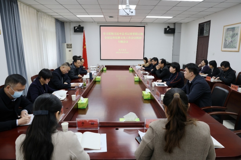 會(hui) 上,與(yu) 會(hui) 人員集中學習(xi) 習(xi) 近平總書(shu) 記重要指示和全國宣傳(chuan) 思想文化工作會(hui) 議精神,部分中心組成員進行交流發言。大家一致表示,習(xi) 近平文化思想在黨(dang) 的宣傳(chuan) 思想文化事業(ye) 發展史上具有裏程碑意義(yi) ,要全麵學習(xi) 貫徹習(xi) 近平文化思想,勇擔使命、踔厲奮發,自覺貫徹落實到學校宣傳(chuan) 思想文化工作各方麵和全過程。