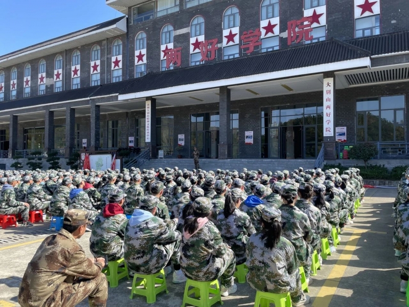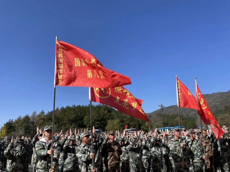 開營儀(yi) 式上,學生換上迷彩服,戴上五星帽,站姿挺立,目光如炬,認真聆聽金剛台28年紅旗不倒的抗戰故事,感悟用鮮血和生命鑄就的“堅守信念、胸懷全局、團結奮進、勇當前鋒”的大別山精神。學生宣誓授旗,國歌起,氣勢昂,鏗鏘有力的宣誓聲響徹整個(ge) 大別山穀。