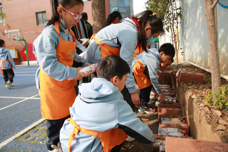 金水區未來小學的該項目從(cong) 今年10月份啟動,經過現場勘察、規劃設計、製作“生態磚”、完善方案,截止到11月初,孩子們(men) 共製作了1400塊“生態磚”,已經全部應用於(yu) 11月15日當天正式施工的花壇圍擋建設中。