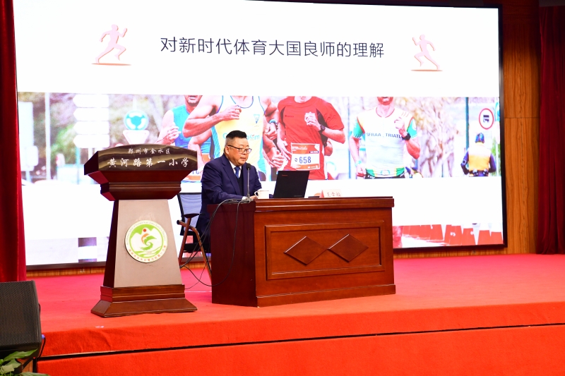 啟動儀(yi) 式結束後,基地校特邀二十六中校長王幸福為(wei) 新教師帶來《努力爭(zheng) 做一名新時代體(ti) 育大國良師》專(zhuan) 題講座,王校長結合生動的教育案例啟發青年教師,要有高站位和大格局,學會(hui) 站在大師的肩膀上進行專(zhuan) 業(ye) 探究,做到大氣為(wei) 人、大智謀事、大愛天下,為(wei) 金水區體(ti) 育教育貢獻力量。