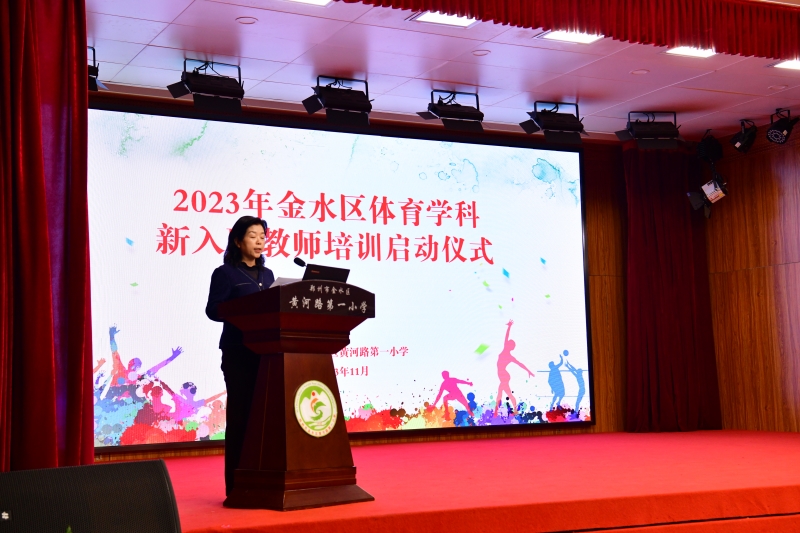 為(wei) 促進新入職教師專(zhuan) 業(ye) 成長,幫助新教師更好地履行崗位職責,11月29日下午,金水區2023年體(ti) 育學科新入職教師基地校培訓啟動儀(yi) 式暨首次培訓活動在黃河路第一小學拉開帷幕。金水區教育局黨(dang) 組成員、副局長高德圓、金水區高招辦主任曹鵬舉(ju) 、金水區教育發展研究中心主任段立群等相關(guan) 領導參加了本次活動。
