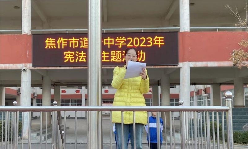 12月4日,在第十個(ge) 國家憲法日到來之際,為(wei) 深入學習(xi) 宣傳(chuan) 習(xi) 近平法治思想,大力弘揚憲法精神和社會(hui) 主義(yi) 法治精神,焦作市道清中學開展了國家憲法日係列主題教育活動。