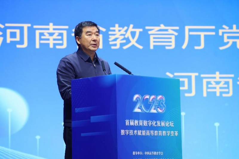 為(wei) 推動我省高校在更高層次、更深程度上探索數字化轉型背景下的教育教學模式變革,11月25日,2023首屆教育數字化發展論壇在河南鄭州舉(ju) 行。省教育廳黨(dang) 組成員、副廳長、一級巡視員刁玉華出席會(hui) 議並講話。來自全國17個(ge) 省市高校的校領導,學校信息、教務部門人員和企業(ye) 代表等近400人參會(hui) 。