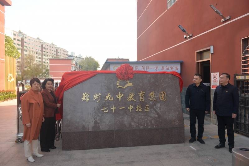 隨後,張瑩校長和徐建誌書(shu) 記分別代表兩(liang) 所學校隆重簽約。全體(ti) 與(yu) 會(hui) 領導、嘉賓移步學校大門口為(wei) “鄭州九中教育集團七十一中校區”揭牌,並合影留念,本次儀(yi) 式在大家的祝福聲中圓滿落幕。