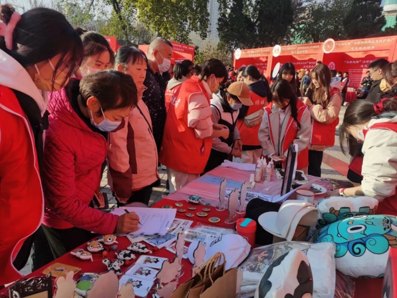 在項目展演現場,指導老師朱訚、馮(feng) 思源、閆晗、朱江帶領學生進行非遺文化講解與(yu) 體(ti) 驗、文創產(chan) 品介紹。為(wei) 了增強活動效果,提升市民參與(yu) 積極性,學校特別設置了集章打卡環節,邀請市民參與(yu) 非遺文化體(ti) 驗、河南文創現狀調研和環保知識問答等活動,進一步深化活動主題,提升活動成效。