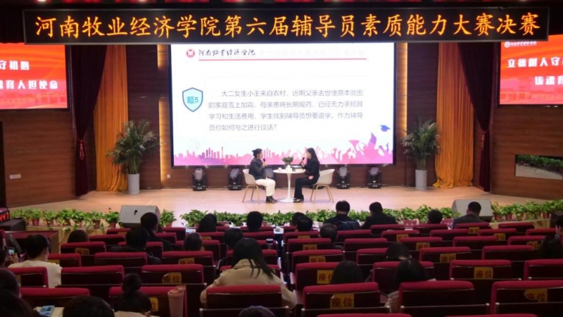 12月7日下午,河南牧業(ye) 經濟學院第六屆輔導員素質能力大賽決(jue) 賽在龍子湖校區舉(ju) 辦。校黨(dang) 委副書(shu) 記楊誌清、副校長姚毅出席並觀看比賽;兄弟院校學工部部長,教育部第十一屆“全國高校輔導員年度人物”入圍獎獲得者,河南牧業(ye) 經濟學院黨(dang) 委宣傳(chuan) 部部長,馬克思主義(yi) 學院院長、黨(dang) 委學工部部長擔任大賽評委;學生工作相關(guan) 職能部門負責人,各學院黨(dang) 委書(shu) 記、副書(shu) 記、團委書(shu) 記(學工辦主任)、團委副書(shu) 記(學工辦副主任)及全體(ti) 輔導員觀看了比賽。