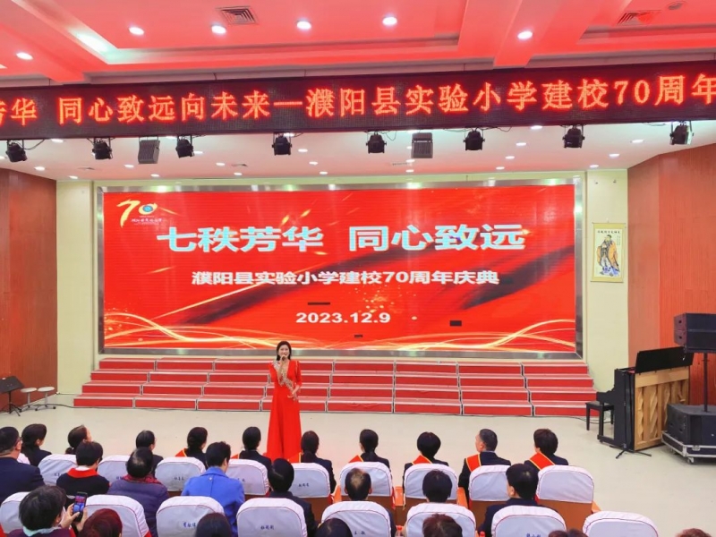七秩弦歌正芳華,同心致遠向未來。12月9日,濮陽縣實驗小學舉(ju) 行建校70周年慶典。濮陽縣教育局黨(dang) 組書(shu) 記劉社花,黨(dang) 組副書(shu) 記、副局長靳儉(jian) 英,縣紀委監委派駐教育局紀檢監察組負責人秦爭(zheng) 上,局黨(dang) 組成員、副局長左運興(xing) ,局黨(dang) 組成員、副總督學常春英,局信息中心主任包誌宏,濮陽縣實驗小學老校長王春梅、紀愛梅,老教師趙海明、吳濮生、魯鳳雲(yun) 和家長代表等300餘(yu) 人參與(yu) 。
